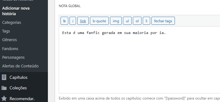 Outra coisa muito importante em Histórias é usar a parte de NOTA GLOBAL para informar seus leitores.